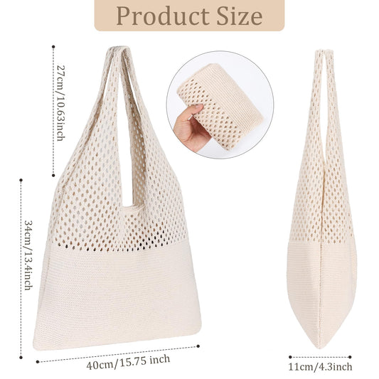 Sightor Crochet Tote Bag, Mesh Beach Bag Knit Summer Hobo Bag Vacation Boho Tote Bag for Women